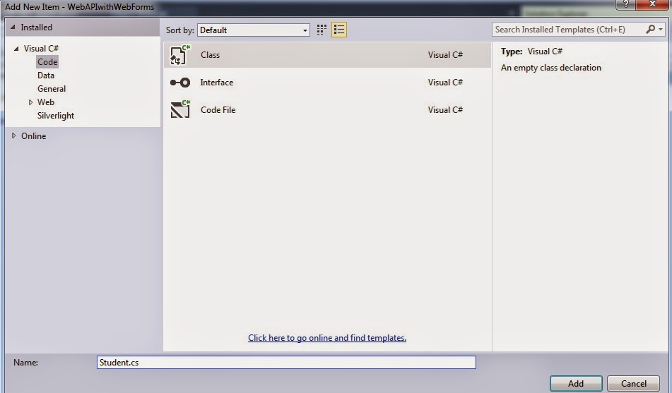 I have already implemented an HTTP service using ASP.NET Web API in one of my previous post that you can refer here. Adding a Model and a Controller is same but the difference is that we are adding it to ASP.NET Web Forms Application. So, let follow the steps as below: